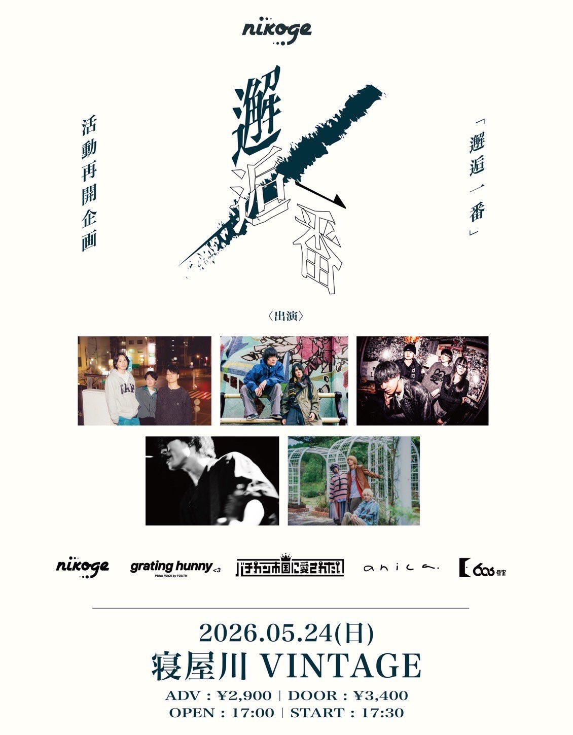 nikoge 活動再開企画「邂逅一番」@寝屋川VINTAGE