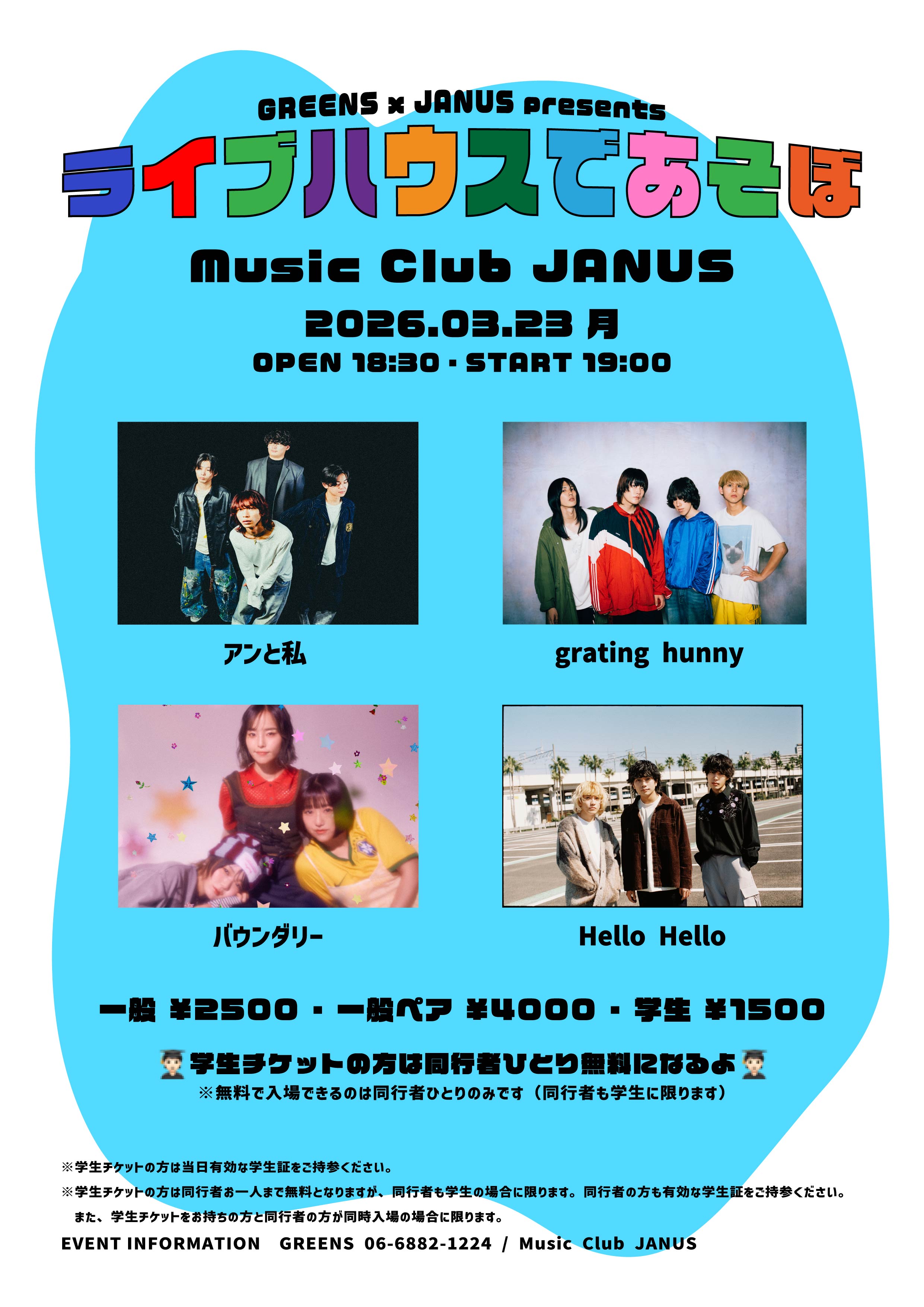 GREENS × JANUS presents 「ライブハウスであそぼ」への出演が決定!